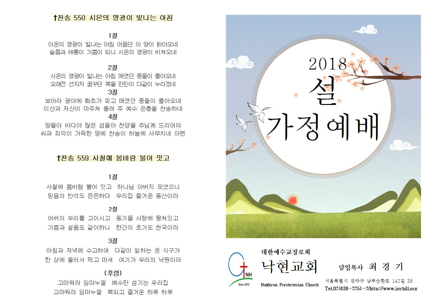 ´ëÇÑ¿¹¼ö±³Àå·Îȸ ³«Çö±³È¸ ´ãÀÓ¸ñ»ç ÃÖ °æ ±â Nakhyun Presbyterian Church ¼¿ïƯº°½Ã °ü¾Ç±¸ ³²ºÎ¼øÈ¯·Î 142±æ 39 Tel.02)838-2251-2/http://www.joyhill.org 3Àý ¾ÆÄ§°ú Àú³á¿¡ ¼ö°íÇÏ¿© ´Ù°°ÀÌ ÀÏÇÏ´Â ¿Â ½Ä±¸°¡ ÇÑ »ó¿¡ µÑ·¯¼ ¸Ô°í ¸¶¼Å ¿©±â°¡ ¿ì¸®ÀÇ ³«¿øÀ̶ó (ÈÄ·Å) °í¸¶¿ö¶ó ÀÓ¸¶´©¿¤ ¿¹¼ö¸¸ ¼¶±â´Â ¿ì¸®Áý °í¸¶¿ö¶ó ÀÓ¸¶´©¿¤ º¹µÇ°í Áñ°Å¿î ÇÏ·ç ÇÏ·ç 2018 ¼³ °¡Á¤¿¹¹è