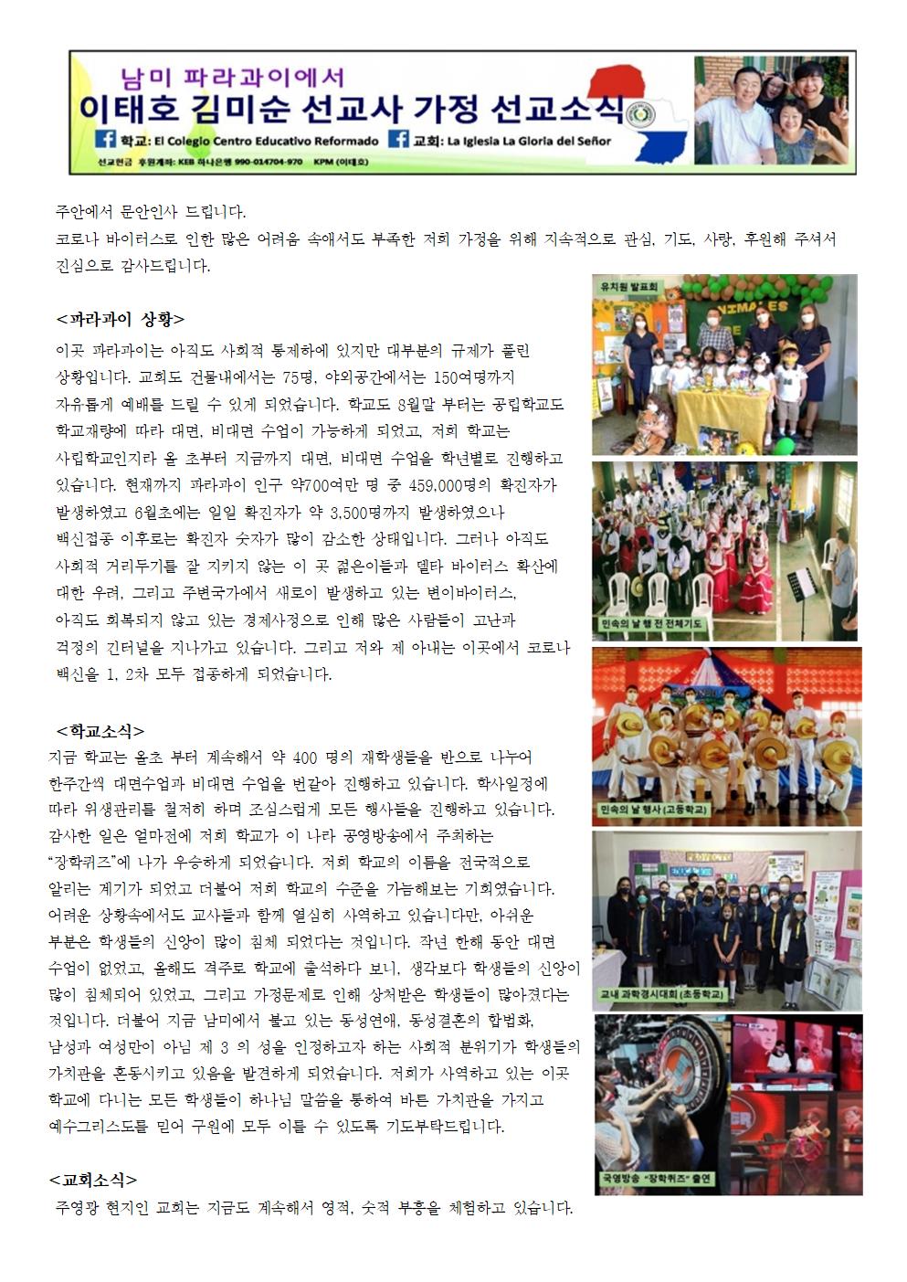 Àú´Â ¿äÁòµµ °è¼ÓÇØ¼ Çб³ äÇü³±³¿Í ±³È¸¼³±³¸¦ ÁغñÇÏ´À¶ó ÇÏ·çÇÏ·ç ¹Ù»Û ½Ã°£µéÀ» º¸³»°í ÀÖ½À´Ï´Ù. ¿äÁòÀº ü·ÂÀûÀ¸·Î Á¶±Ý ÁöÃļ ±×·±Áö ÇÑ´ÞÀüºÎÅÍ Àü¿¡ ¾Î¾Ò´ø ±¸¾È¿Í»ç ÃʱâÁõ»óÀÌ ´Ù½Ã Àç¹ßµÇ¾î ¿äÁò Ä¡·á¹Þ°í ÀÖ½À´Ï´Ù. À̸¦ À§ÇØ ±âµµºÎʵ右´Ï´Ù. Á¦ ¾Æ³» ±è¹Ì¼ø ¼±±³»ç´Â ±³È¸°¡ ¼ºÀåÇÔ¿¡ µû¶ó, ±³ÀεéÀÇ ¿µÀû ¾î¸Ó´Ï·Î¼ÀÇ ¿ªÇÒÀ» Àß °¨´çÇϰíÀÚ ¿½ÉÈ÷ ³ë·ÂÇϰí ÀÖ½À´Ï´Ù. û³âµé¿¡°Ô´Â ¸ÀÀÖ´Â °£½ÄÀ¸·Î, ¼ºµµµé¿¡°Ô´Â µû½ºÇÑ »ç¶û°ú ¾î¸Ó´ÏÀÇ ¸¶À½À¸·Î ¼ºµµµéÀ» µ¹º¸°í ÀÖ½À´Ï´Ù. Àú¿Í Á¦ ¾Æ³»´Â ³»³â 4¿ù°æ ÁîÀ½¿¡ º»±¹ »ç¿ªÀ¸·Î Çѱ¹À» ¹æ¹®ÇϰíÀÚ ÇÕ´Ï´Ù. ³»³â¿¡ Çѱ¹¿¡ ¹æ¹®ÇÒ ¼ö Àִ ȯ°æÀÌ ÀÌ·ç¾îÁöµµ·Ï ±âµµºÎʵ右´Ï´Ù. ¾Æµé ÀÌ¿µ±¤Àº ½Å´ë¿ø »ýȰ¿¡ Àß ÀûÀÀÇϰí ÀÖ°í, ±³È¸»ç¿ªµµ ¿½ÉÈ÷ Çϰí ÀÖ½À´Ï´Ù. ¿µ±¤À̰¡ ¾î´À °÷¿¡ ÀÖµçÁö ¡°ÈÆòÄÉ ÇÏ´Â ÀÚ¡±°¡ µÇ±æ ¹Ù¶ó¸ç ¸ðµç ÀÏ¿¡ ³¡±îÁö ÃÖ¼±À» ´ÙÇÏ´Â ¾ÆµéÀÌ µÇµµ·Ï ±âµµ ºÎʵ右´Ï´Ù. µþ ÀÌ Å©¸®½ºÆ¼³ª´Â Çѱ¹¿¡¼ ù ÇÑÇØ¸¦ º¸³»¸ç º»ÀÎÀÇ ¹Ì·¡¸¦ À§ÇØ °è¼Ó ÁغñÁß¿¡ ÀÖ½À´Ï´Ù. µþ Å©¸®½ºÆ¼³ª°¡ ¹«¾ùº¸´Ùµµ Çϳª´Ô Áß½ÉÀ¸·Î »ì¾Æ°¡´Â µþÀÌ µÇ±æ ¹Ù¶ó¸ç, ÁÖ´Ô²² ¾²ÀÓ ¹Þ´Â µþÀÌ µÇµµ·Ï ±âµµºÎʵ右´Ï´Ù. ´Ù½Ã Çѹø ¿¬¾àÇÑ ÀúÈñ °¡Á¤À» ½Å·ÚÇØ ÁÖ½Ã°í »ç¶ûÇØ Áּż Áø½ÉÀ¸·Î °¨»çµå¸³´Ï´Ù. ÀúÈñ°¡ »ç¿ªÇϰí ÀÖ´Â ±³È¸¿Í Çб³, ±×¸®°í °¡Á¤ÀÇ ÁÖÀÎ µÇ½Ã´Â Çϳª´Ô¸¸À» ¹Ù¶óº¸¸ç ÄÚ¶÷µ¥¿ÀÀÇ Á¤½ÅÀ¸·Î À̰÷ ¼±±³Áö¿¡¼ ÃÖ¼±À» ´ÙÇϰڽÀ´Ï´Ù.