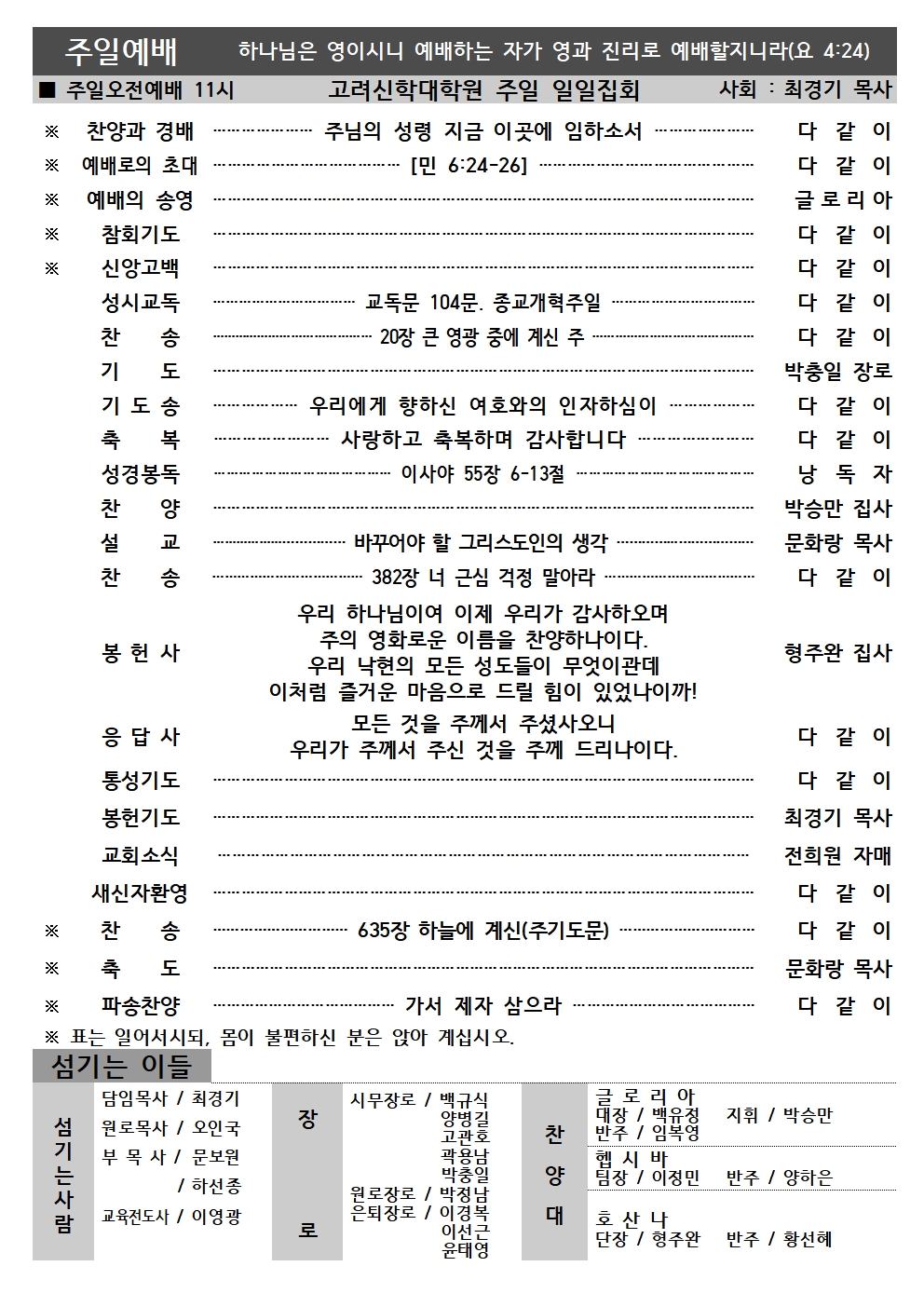 2021³â ´Ù°¡¿Ã ¼¼´ë, ¸¶À½À» »õ·Ó°Ô ÇÏÀÚ! 10¿ù - ¡°³¯¸¶´Ù ¼º¼÷ÇØ°¡´Â ½Å¾ÓÀÇ »î¡± | ÀÏ ½Ã | ¿¹¹è ¹× Çà»ç | ȸÀÇ ¹× ¿ù·Êȸ | 10¿ù 24ÀÏ | Á¾±³°³Çõ±â³äÁÖÀÏ/°í·Á½ÅÇдëÇпøÁÖÀÏ | | 10¿ù 31ÀÏ | | ´çȸ | 11¿ù 7ÀÏ | | ÇѳªÈ¸, Á¦3³²ÀüµµÈ¸, Á¦4¿©ÀüµµÈ¸ ±³À°À§¿øÈ¸ | 11¿ù 14ÀÏ | | ¾È¼öÁý»çȸ, Á¦1¿©ÀüµµÈ¸ Á¦2¿©ÀüµµÈ¸ |
