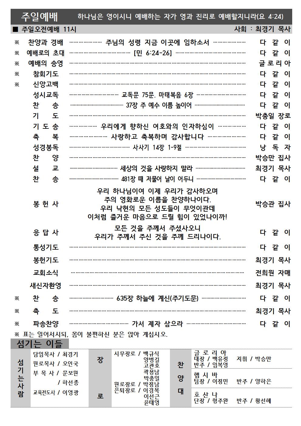 ¡Ø ±¤ °í 1. 2021³â °á»ê°ú 2022³â ¿¹»êÀ» À§ÇÑ °øµ¿ÀÇȸ *. ÀϽà : ¿À´Ã ¿ÀÀü ¿¹¹è ÈÄ *. Àå¼Ò : º»´ç(¼¼·Ê±³ÀεéÀº Âü¼®ÇÏ¼Å¾ß ÇÕ´Ï´Ù.) 2. 70ÀÏ »õº®±âµµÈ¸ *. ÀϽà : 2022³â 2¿ù 7ÀÏ(¿ù)~4¿ù 17ÀÏ(ÁÖÀÏ) ¿ÀÀü 5½Ã *. ±³´Ü ⸳ 70ÁÖ³â°ú ±³È¸ ¼³¸³ 50ÁÖ³âÀ» ¸ÂÀÌÇÏ´Â ±âµµÈ¸ *. µ¿ÂüÇØ Áּż ÇÕ½ÉÇÏ¿© ±âµµÇÏ´Â º¹µÈ ½Ã°£ µÇ¼¼¿ä. 3. ±³È¸ º»´ç ³»ºÎ Á¤ºñ(ÆäÀÎÆ®Ä¥) *. 2¿ù 14ÀÏ(¿ù)~19ÀÏ(Åä) *. ÀÌ ±â°£ ³» »õº®±âµµÈ¸, ¼ö¿ä±âµµÈ¸´Â ÁöÇÏ ¼¼¹Ì³ª½Ç¿¡¼ ÇÕ´Ï´Ù. 4. Çå½Å ¿¹¹è ¹× ±³È¸ °¢ ±â°ü ¿î¿µ Á¤»óÈ *. 3¿ùºÎÅÍ ±³È¸ °¢ ±â°ü ¿î¿µÀ» Á¤»óÈÇÕ´Ï´Ù. *. Çå½Å¿¹¹è´Â 3¿ùºÎÅÍ ¼º°¡´ë´Â ÁغñµÇ´Â ´ë·Î ÁøÇàÇÕ´Ï´Ù. 5. 50Áֳ⠱â³ä ºÎÈï ¼ºÈ¸ *. ÀϽà : 3¿ù 4ÀÏ(±Ý), 5ÀÏ(Åä) ¿ÀÈÄ 7½Ã, 6ÀÏ(ÁÖÀÏ) ¿ÀÀü 11½Ã, ¿ÀÈÄ 2½Ã *. °»ç : ±èöºÀ ¸ñ»ç(ºÎ»ê »çÁ÷µ¿±³È¸ ¿ø·Î¸ñ»ç) *. »ç¸ðÇÔÀ¸·Î ±âµµÇÏ½Ã°í ±â´ëÇÔÀ¸·Î ÁÖ½Ç ÀºÇý¸¦ ±â´Ù¸®½Ã±â ¹Ù¶ø´Ï´Ù. 6. 50ÁÖ³â ÁÖ¿ä Çà»ç *. 50Áֳ⠱â³ä ºÎÈï ¼ºÈ¸ : 3¿ù 4ÀÏ(±Ý)~6ÀÏ(ÁÖÀÏ) *. 50Áֳ⠱â³ä ¿¹¹è : 7¿ù 3ÀÏ(ÁÖÀÏ) ¿ÀÀü 11½Ã *. ½ÉÀ庴 ¾î¸°ÀÌ ¼ö¼úºñ Áö¿ø(½ÉÀåÀç´Ü Àú±ÝÅëÀ» Ȱ¿ëÇØ ÁÖ¼¼¿ä.) *. ¼±±³¿Í ÀÌ¿ôÀ» À§ÇÑ »ç¶ûÀÇ ¹ÙÀÚȸ ¹× »ç¶ûÀÇ À½¾Çȸ *. 50³â»ç ¹ß°£ ¹× ȨĿ¹Ö µ¥ÀÌ *. 50ÁÖ³âÀ» ±â³äÇÏ¿© ÁغñÇÏ´Â Çà»ç¸¦ À§ÇØ ¸¹Àº ±âµµ ºÎʵ右´Ï´Ù. *. 50³â¿¡ °ü·ÃµÇ´Â ÀÚ·á(»çÁø, ¹®¼)¸¦ °øÀ¯ÇØ ÁÖ½Ã¸é °¨»çÇϰڽÀ´Ï´Ù. 7. ¿¹¹è¿Í °æ¹è, ¿ÀÈÄ¿¹¹è *. ¸ðµç ¼ºµµµéÀÌ ÇÔ²² ÇÏ´Â ¿¹¹è¸¦ µå¸³´Ï´Ù. *. Ȥ °¡Á¤¿¡¼ ¿µ»óÀ¸·Î ¿¹¹èÇÏ½Ç ºÐµéÀº °¡Á¤¿¡¼ µå¸®½Ã°í, ¾îµð¼ ¿¹¹èÇϵç Çϳª´Ô ¹ÞÀ¸½Ã´Â ¿µ°ú Áø¸®ÀÇ ¿¹¹è°¡ µÇ½Ã±â ¹Ù¶ø´Ï´Ù. *. ¿¹¹è ´ã´çÀÚµéÀº ºüÁü¾øÀÌ Âü¼®Çϼż ºÀ»çÇØ ÁÖ½Ã¸é °¨»çÇϰڽÀ´Ï´Ù. *. ¿ÀÈÄ ¿¹¹è ÈÄ °¢ ¸ñÀåÀº ¸ðÀÓÀ» °¡Á®Áֽñ⠹ٶø´Ï´Ù. 8. ¸±·¹ÀÌ ¼º°æÇÊ»ç *. ¸ðµç ¼ºµµµéÀÌ ´Ù ÇÔ²² ÇÏ´Â ÀºÇýÀÇ ½Ã°£ÀÌ µÇ½Ã±â¸¦ ¹Ù¶ø´Ï´Ù. ¸±·¹ÀÌ ½Ã°£Ç¥¿¡ À̸§À» Àû¾îÁÖ½Ã°í ±× ½Ã°£¿¡ ¿À¼Å¼ ÇÊ»çÇÏ½Ã¸é µÇ°Ú½À´Ï´Ù. *. Ã¥»ó À§¿¡ ±âµµÁ¦¸ñÀÌ ÀûÇôÀÖÀ¸´Ï ÇÊ»ç ÈÄ Àá½Ã ±âµµÁ¦¸ñ ´ë·Î ±âµµÇϽŠÈÄ µ¹¾Æ°¡½Ã±â ¹Ù¶ø´Ï´Ù. 9. ³«Çö °øµ¿Ã¼°¡ ÇÔ²² ÇÏ´Â ±âµµ(¸ÅÀÏ ¿ÀÈÄ 10½Ã) *. ¸ÅÀÏ ¿ÀÈÄ 10½Ã´Â ¸ðµç ¼ºµµ°¡ ÇÔ²² ÇÏ´Â ±âµµ½Ã°£ÀÔ´Ï´Ù. °¡Á¤°ú ±³È¸¿Í ³ª¶ó¸¦ À§ÇØ ±âµµÇϽñ⠹ٶø´Ï´Ù. 10.³«Çö ±âµµ Á¦¸ñ *. ³ª¶óÀÇ ¾ÈÁ¤°ú ¹Ù¸¥ Á¤Ä¡¿Í °æÁ¦ ȸº¹À» À§ÇØ ±âµµÇØ ÁÖ¼¼¿ä, *. ¿ì¸® ±³È¸°¡ µ½´Â ¼±±³»ç´ÔµéÀ» À§ÇØ ±âµµÇØ Áֽñ⠹ٶø´Ï´Ù. *. ±³È¸ ³»¿¡ °Ç°ÀÌ ÁÁÁö ¾ÊÀº ºÐµé, ÀÔ¿ø Ä¡·áÁßÀÎ ºÐµé ±×¸®°í ¿¬·ÎÇϽŠºÐµéÀÇ °°ÇÇÔÀ» À§ÇØ Ç×»ó ±âµµÇØ Áֽñ⠹ٶø´Ï´Ù. 11.±³À°ºÎ ¼Ò½Ä *. ÁÖ¸»Çб³ : 3¿ùºÎÅÍ ½ÃÇàÇÏ·Á°í ÇÕ´Ï´Ù. ±³»ç·Î Çå½ÅÇÏ½Ç ºÐµéÀº ¹®ÀÇÇØ ÁÖ¼¼¿ä.(¹®º¸¿ø ¸ñ»ç) *. ±³À°±â°ü ¼ö·á¿¹¹è : 2¿ù 27ÀÏ(ÁÖÀÏ) ¿ÀÀü ¿¹¹è ½Ã *. ±³À°±â°ü¿¡ ´õ ¸¹Àº °ü½ÉÀ» °¡Á® ÁÖ½Ã°í ±âµµÇØ ÁÖ¼¼¿ä. 12. ¸¶½ºÅ© ¹Þ¾Æ °¡½Ã°í, Àüµµ¿ëÀº Àüµµ¿¡ »ç¿ëÇØ Áֽñ⠹ٶø´Ï´Ù. 13. ¸ðÀÓ
