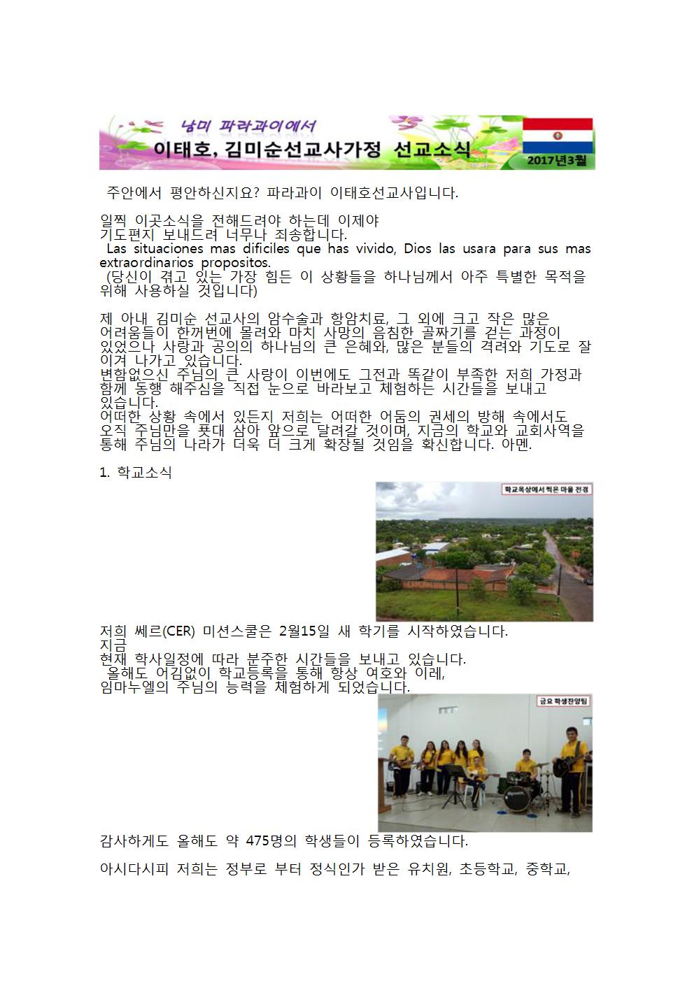 Á־ȿ¡¼ Æò¾ÈÇϽÅÁö¿ä? ÆÄ¶ó°úÀÌ ÀÌÅÂÈ£¼±±³»çÀÔ´Ï´Ù. ÀÏÂï À̰÷¼Ò½ÄÀ» ÀüÇØµå·Á¾ß Çϴµ¥ ÀÌÁ¦¼¾ß ±âµµÆíÁö º¸³»µå·Á ³Ê¹«³ª Á˼ÛÇÕ´Ï´Ù. Las situaciones mas dificiles que has vivido, Dios las usara para sus mas extraordinarios propositos. (´ç½ÅÀÌ °Þ°í ÀÖ´Â °¡Àå Èûµç ÀÌ »óȲµéÀ» Çϳª´Ô²²¼ ¾ÆÁÖ Æ¯º°ÇÑ ¸ñÀûÀ» À§ÇØ »ç¿ëÇÏ½Ç °ÍÀÔ´Ï´Ù) Á¦ ¾Æ³» ±è¹Ì¼ø ¼±±³»çÀÇ ¾Ï¼ö¼ú°ú Ç×¾ÏÄ¡·á, ±× ¿Ü¿¡ Å©°í ÀÛÀº ¸¹Àº ¾î·Á¿òµéÀÌ ÇѲ¨¹ø¿¡ ¸ô·Á¿Í ¸¶Ä¡ »ç¸ÁÀÇ À½Ä§ÇÑ °ñÂ¥±â¸¦ °È´Â °úÁ¤ÀÌ ÀÖ¾úÀ¸³ª »ç¶û°ú °øÀÇÀÇ Çϳª´ÔÀÇ Å« ÀºÇý¿Í, ¸¹Àº ºÐµéÀÇ °Ý·Á¿Í ±âµµ·Î Àß ÀÌ°Ü ³ª°¡°í ÀÖ½À´Ï´Ù. º¯ÇÔ¾øÀ¸½Å ÁÖ´ÔÀÇ Å« »ç¶ûÀÌ À̹ø¿¡µµ ±×Àü°ú ¶È°°ÀÌ ºÎÁ·ÇÑ ÀúÈñ °¡Á¤°ú ÇÔ²² µ¿Çà ÇØÁÖ½ÉÀ» Á÷Á¢ ´«À¸·Î ¹Ù¶óº¸°í üÇèÇÏ´Â ½Ã°£µéÀ» º¸³»°í ÀÖ½À´Ï´Ù. ¾î¶°ÇÑ »óȲ ¼Ó¿¡¼ ÀÖµçÁö ÀúÈñ´Â ¾î¶°ÇÑ ¾îµÒÀÇ ±Ç¼¼ÀÇ ¹æÇØ ¼Ó¿¡¼µµ ¿ÀÁ÷ ÁÖ´Ô¸¸À» Ç©´ë »ï¾Æ ¾ÕÀ¸·Î ´Þ·Á°¥ °ÍÀ̸ç, Áö±ÝÀÇ Çб³¿Í ±³È¸»ç¿ªÀ» ÅëÇØ ÁÖ´ÔÀÇ ³ª¶ó°¡ ´õ¿í ´õ Å©°Ô È®ÀåµÉ °ÍÀÓÀ» È®½ÅÇÕ´Ï´Ù. ¾Æ¸à. 1. Çб³¼Ò½Ä ÀúÈñ ½ê¸£(CER) ¹Ì¼Ç½ºÄðÀº 2¿ù15ÀÏ »õ Çб⸦ ½ÃÀÛÇÏ¿´½À´Ï´Ù. Áö±Ý ÇöÀç ÇлçÀÏÁ¤¿¡ µû¶ó ºÐÁÖÇÑ ½Ã°£µéÀ» º¸³»°í ÀÖ½À´Ï´Ù. ¿ÃÇØµµ ¾î±è¾øÀÌ Çб³µî·ÏÀ» ÅëÇØ Ç×»ó ¿©È£¿Í ÀÌ·¹, ÀÓ¸¶´©¿¤ÀÇ ÁÖ´ÔÀÇ ´É·ÂÀ» üÇèÇÏ°Ô µÇ¾ú½À´Ï´Ù. °¨»çÇϰԵµ ¿ÃÇØµµ ¾à 475¸íÀÇ ÇлýµéÀÌ µî·ÏÇÏ¿´½À´Ï´Ù. ¾Æ½Ã´Ù½ÃÇÇ ÀúÈñ´Â Á¤ºÎ·Î ºÎÅÍ Á¤½ÄÀΰ¡ ¹ÞÀº À¯Ä¡¿ø, ÃʵîÇб³, ÁßÇб³, °íµîÇб³ Àü °úÁ¤À» ¿î¿µÇϰí ÀÖÀ¸¸ç ƯÈ÷ Çб³¿¡ ´ëÇÑ ÁÁÀº ¼Ò¹®À¸·Î ÀÎÇØ Áß°íµîÇлý¼ö°¡ ¸Å³â Áõ°¡Çϰí ÀÖ´Â Ãß¼¼ÀÔ´Ï´Ù. Áö±Ýµµ ¸ÅÀÏ ÇÏ·ç ³× Â÷·Ê¿¡ °ÉÃÄ Çг⺰·Î äÇÃÀ» µå¸®°í ÀÖ°í ¿ÃÇØ´Â óÀ½À¸·Î ¼º°æ ťƼ±³Àç (Bible Time)¸¦ ±¸ÀÔÇÏ¿© ÃʵîÇб³ 4Çг⠺ÎÅÍ °í3±îÁö ¼ö¾÷ Àü ¼º°æÅ¥Æ¼°øºÎ¸¦ ½ÃÇàÇϰí ÀÖ½À´Ï´Ù. ±×¸®°í Áß°íµîÇб³ ±Ý¿äÂù¾ç ¹êµå¸¦ °á¼ºÇÏ¿© ÇлýµéÀÌ ´õ¿í ´õ Âù¾ç¿¡ °¡±îÀÌ Çϰí ÀúÈñ Çб³»ýȰÀ» ÅëÇØ ¹Ù¸¥ ±âµ¶±³ ¼¼°è°üÀ» °®µµ·Ï ³ë·ÂÇϰí ÀÖ½À´Ï´Ù. 2. ±³È¸¼Ò½Ä Áö±Ý ÀúÈñ ¡°ÁÖ¿µ±¤ ÇöÁöÀÎ ±³È¸¡±´Â ¿µÀû, ¼ýÀû ºÎÈïÀ» üÇèÇϰí ÀÖ½À´Ï´Ù. À۳⠿¬¸»°ú ¿Ã ¿¬ÃÊ¿¡ Èûµç °úÁ¤À» º¸³»°í ÀÖÀ» ¶§¿¡ Çϳª´ÔÀº ±³È¸ºÎÈïÀ» ÅëÇØ ÁÖ´ÔÀÌ ÀúÈñ¿Í ÇÔ²² ÇϽÉÀ» º¸¿©Áּ̽À´Ï´Ù. ´Ã ÁÖ´Ô²² ¼±±³Áö¿¡¼ ¡°¼ýÀÚ¿¡ ¿¬¿¬ÇÏÁö ¾Ê°í ¿ÀÁ÷ ÁÖ´Ô²²¸¸ ¸Å´Þ¸®´Â ÀÛÁö¸¸ °ÇÏ°í °Ç°ÇÑ ±³È¸°¡ µÇ°ÔÇØ ´Þ¶ó°í ±âµµÇϰí ÀÖ¾ú´Âµ¥ ÁÖ´Ô²²¼ ÀúÈñ¸¦ ±àÈáÈ÷ ¿©°ÜÁÖ»ç ÀúÈñ´Â Áö±Ý ºÎÈïÀ» üÇèÇϰí ÀÖ½À´Ï´Ù. ¿¹¹è¸¦ ÅëÇØ Çϳª´ÔÀÇ ¿ª»ç¸¦ °£ÀýÈ÷ ¹Ù¶ó´Â ¼ºµµµé, ¼·Î ÀÌÇØÇÏ°í ¼·Î¸¦ ¼¶±â·Á°í ³ë·ÂÇÏ´Â ¼ºµµµé, Çϳª´ÔÀÇ ÀÏÀ» ÇϰíÀÚ ÀÚ¿øÇÏ¸ç ³ªº¸´Ù ´õ Àüµµ¿¡ ¾ÕÀå¼´Â ¼ºµµµé, ¼ö¿ä±âµµ ¸ðÀÓÀ» ÅëÇØ »îÀÇ ¹®Á¦¸¦ ³õ°í °£ÀýÈ÷ ±âµµÇÏ´Â ¼ºµµµé, Çϳª´ÔÀÌ ¿ì¸®ÀÇ ÁÖÀεǽÉÀ» ÀÎÁ¤ÇÏ¸ç ±â»ÝÀ¸·Î ½ÊÀÏÁ¶¿Í °¨»çÇå±Ý µå¸®´Â ¼ºµµµé, ¿Ü±¹ÀÎÀÎ Àú¸¦ ±×µéÀÇ ¸ñȸÀڷμ ÀÎÁ¤, ½Å·ÚÇØ ÁÖ°í µû¶ó¿Í ÁÖ´Â ÇöÁöÀÎ ¼ºµµµéÀÌ °í¸¿°í °í¸¶¿ö À̵éÀ» º¼ ¶§ ¸¶´Ù ´õ ¸¹Àº Ã¥ÀÓ°¨ ´À³¢°í ÀÖ½À´Ï´Ù. ¶Ç ÇöÀç ´Ù¸¥ Áö¿ª¿¡ Åä¿äÀÏ ¸¶´Ù ¾î¸°ÀÌ Àüµµ Áýȸ¸¦ ¿°í ÀÖ°í, ¿Ã Á߹ݱ⿡´Â ¿¹ºñ Á÷ºÐÀÚ Áغñ¸ðÀÓ¸¦ ÁغñÇϰí, ³»³âºÎÅÍ´Â º»°ÝÀûÀ¸·Î ±³È¸ Á÷ºÐÀÚµéÀ» ¼¼¿ö Çѱ¹±³È¸ ó·³ Á¶Á÷ÀûÀÎ ±³È¸·Î ¼¼¿ö ³ª¾Æ°¡·Á°í ÇÕ´Ï´Ù. 3. ÀÚµ¿Â÷ ±¸ÀÔ ±×µ¿¾È Çб³¿Í ±³È¸»ç¿ªÀ» ÇÏ´Â µ¿¾È »çÁ¤»ó Áö±Ý±îÁö ²À ÇÊ¿äÇß´ø ½ÂÇÕÂ÷¸¦ ±¸ÀÔÇÏÁö ¸øÇß¾ú´Âµ¥, ÀúÈñ »ç¿ªÀ» À§ÇØ ±âµµÇØ Áֽô ÇÑ ¼ºµµ´ÔÀÇ ¸ñÀûÇå±ÝÀ» ÅëÇØ À̹ø¿¡ Çö´ë ½ºÅ¸·º½º(2002³âÇü)À» ±¸ÀÔÇÏ°Ô µÇ¾ú½À´Ï´Ù. ±×¸®°í Áö±Ý Çб³¿Í ±³È¸»ç¿ª¿¡ ¾ÆÁÖ À¯¿ëÇÏ°Ô »ç¿ëÇϰí ÀÖ½À´Ï´Ù. °¨»çÇϰԵµ Çб³¿Í ±³È¸°¡ ºÎÈïÇÔ¿¡ µû¶ó ½ÂÇÕÂ÷ ÇÑ´ë°¡ ´õ ÇÊ¿äÇÔÀ» ´À³¢°í ÀÖ°í À̸¦ À§ÇØ ¼ºµµµé°ú ÇÔ²² ±âµµÇϰí ÀÖ½À´Ï´Ù. 4. ±è»ó¿ø( ±èÁø°æ, È÷¿¤, ´Ù´Ï¿¤) ¼±±³»ç °¡Á¤ À̹ø¿¡ ÀúÈñ ¼±±³Áö¿ªÀ¸·Î ±è»ó¿ø ¼±±³»ç °¡Á¤ÀÌ ¿À°Ô µÇ¾ú½À´Ï´Ù. ¼±±³¿¡ ´ëÇÑ Å« ºñÀüÀ» ǰ°í ÁÖ´ÔÀÇ ¼·¸®¿Í ÀεµÇϽɿ¡ µû¶ó À̰÷ ÀúÈñ°¡ ÀÖ´Â ¼±±³Áö·Î Çù·ÂÇϱâ À§ÇØ ¿Â °¡Á¤ÀÔ´Ï´Ù. ¸ÕÀú À̰÷¿¡ ¸Ó¹°¸ç 2³â µ¿¾È ¹®ÈÀûÀÀ ¹× ¾ð¾î ÈÆ·Ã±â°£À» º¸³¾ °ÍÀÔ´Ï